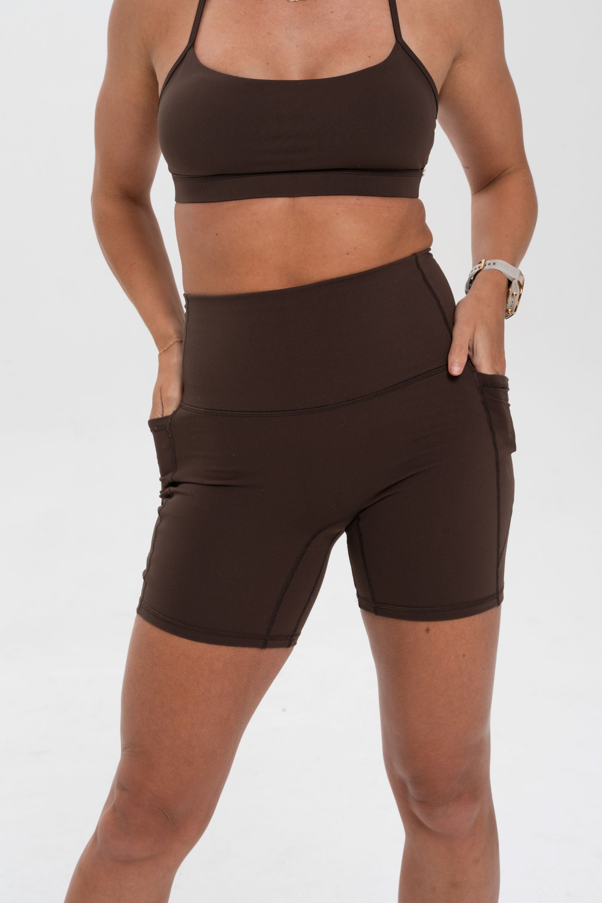 Experience the elevated Jenny Reinvented, now designed with practical pockets for your convenience. These are the perfect running shorts for those on the go, featuring sweat-wicking material and a soft touch for ultimate comfort. The high waistband sits comfortably, giving you a snatched fitting look. With a 5-inch inseam and available in beautiful colors, these shorts effortlessly blend style with functionality. They feature opaque material with no VPL and no front seam, a must-have for any active wardrobe. Wash with cool water with similar colours to avoid discolourment (don't wash any light colours with darks!), no need for fabric softener! When drying, drape over the hanger out the way of direct sunlight to avoid sun damage.