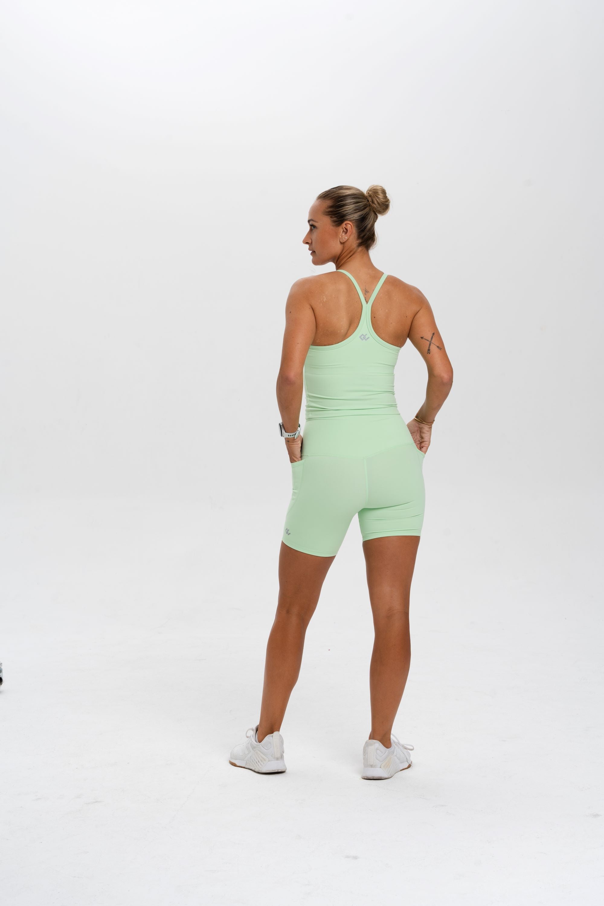 Discover the Juno Tank, a gorgeous new tank that seamlessly merges style and functionality at Original Culprit. Its 'Y' back detail contours the shape of your back, offering flawless comfort. Designed with a slight crop and built-in bra, it pairs perfectly with its matching leggings or shorts. Not only can you sweat in it, but you can also dress it up with jeans or simply lounge about. Elevate your wardrobe with this versatile piece. Wash with cool water with similar colours to avoid discolourment (don't wash any light colours with darks!), no need for fabric softener! When drying, drape over the hanger out the way of direct sunlight to avoid sun damage.
